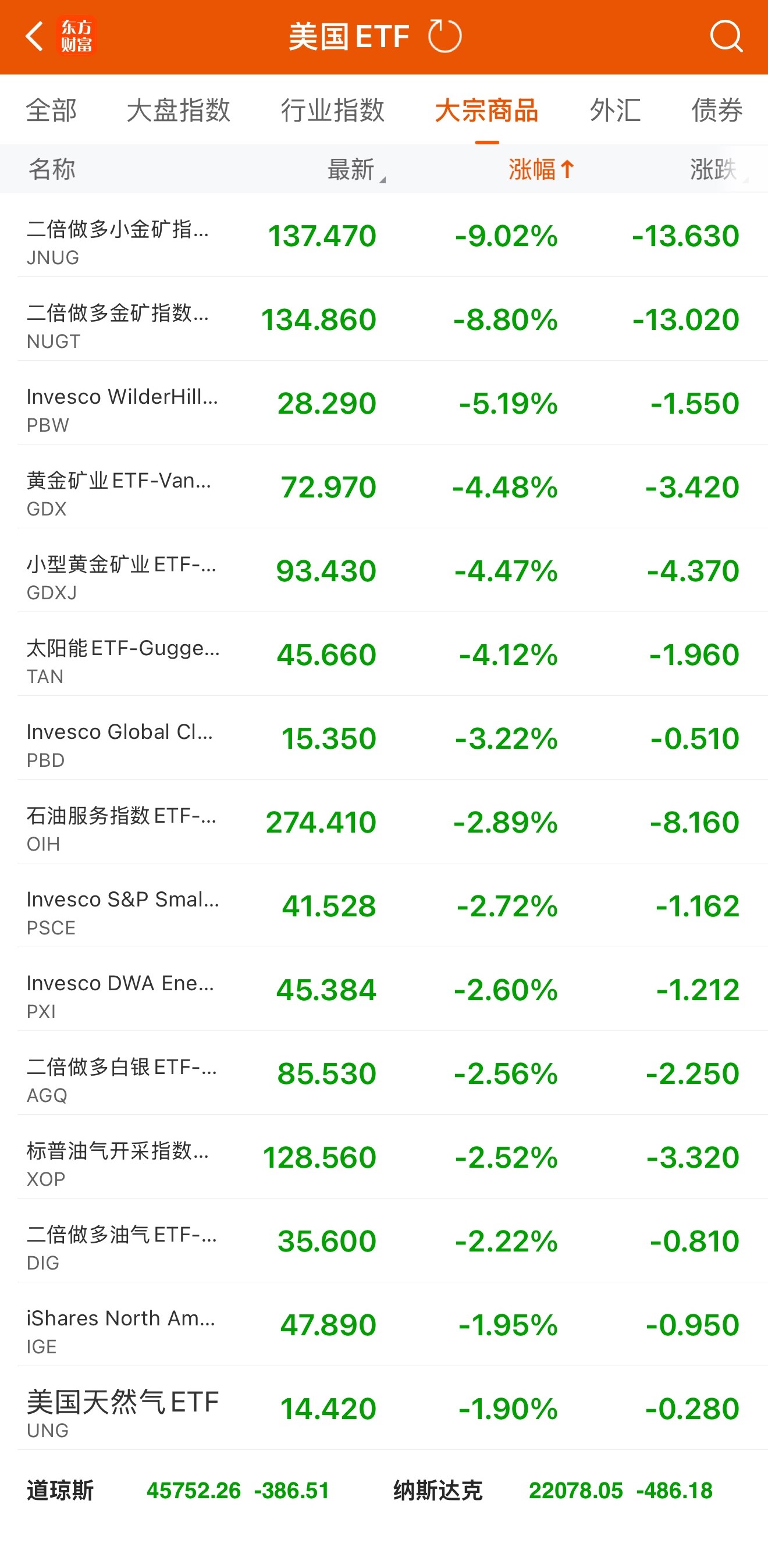XM中文官网2倍做多小型金矿指数-Direxion(JNUG.US) 跌9.02%,成交额4473.51万美元。