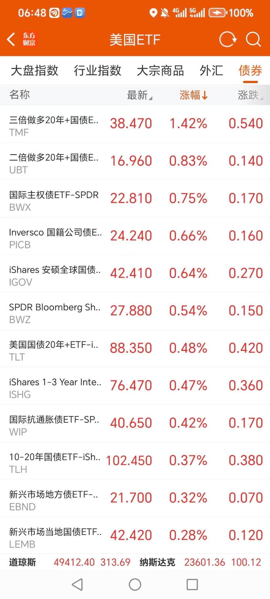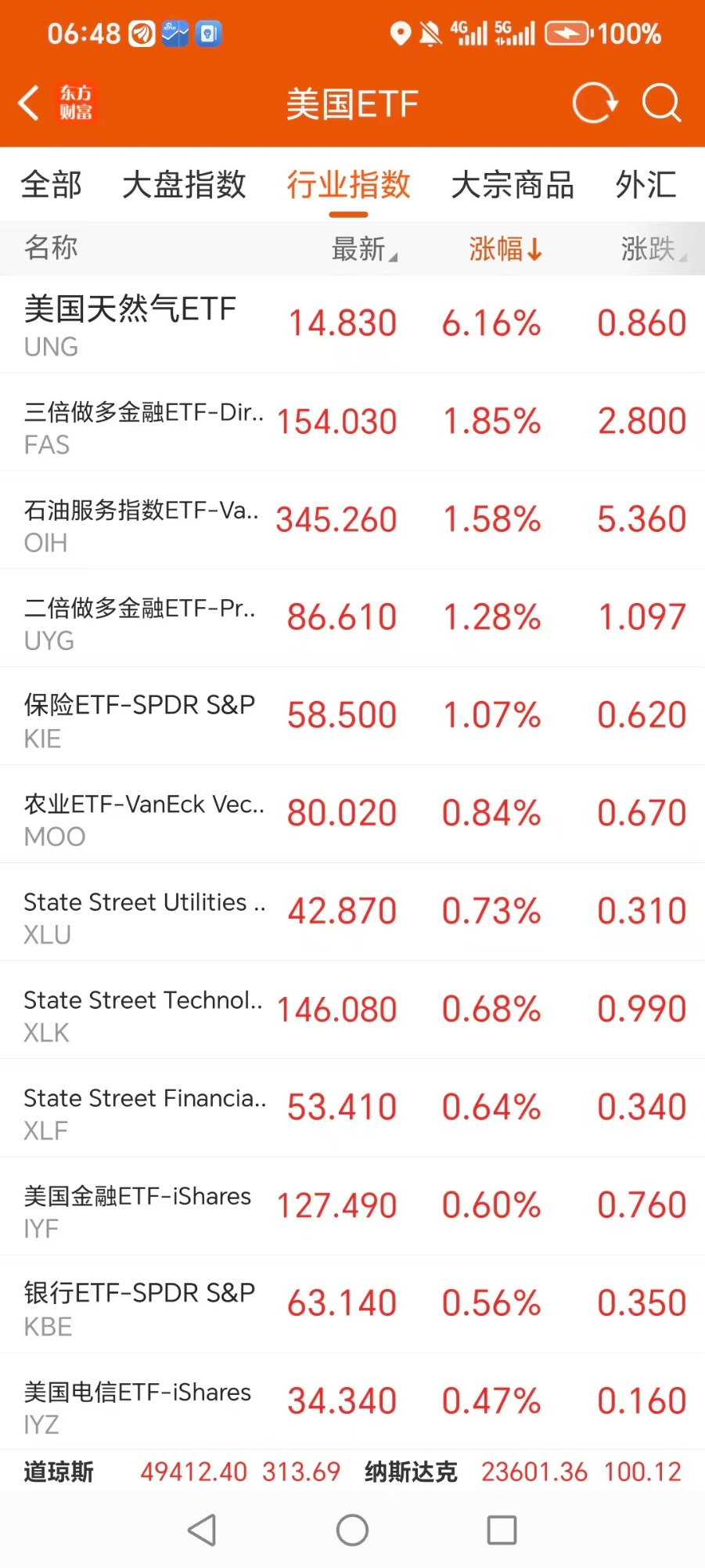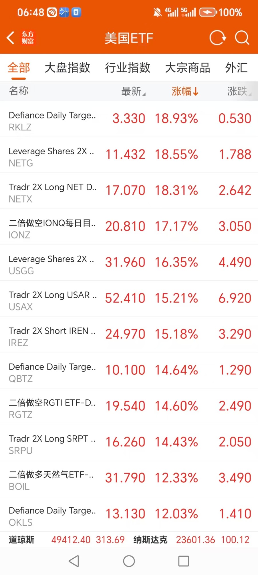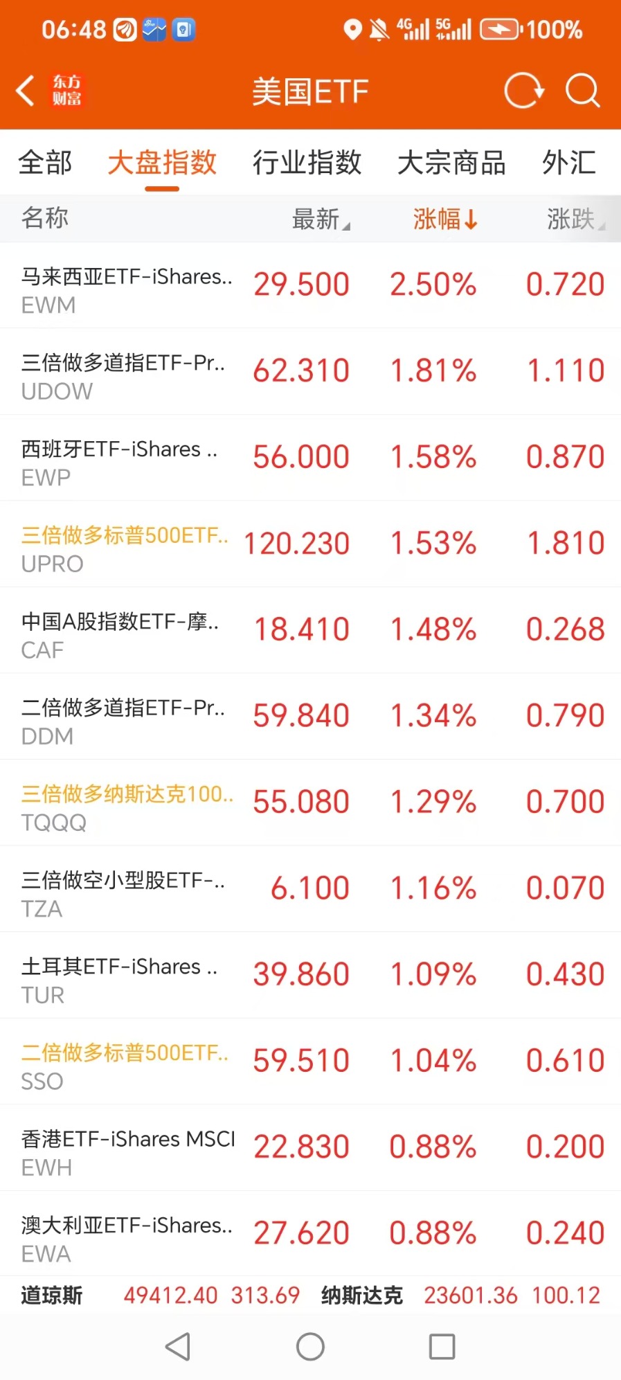 美股大型指数ETF升幅榜Top5