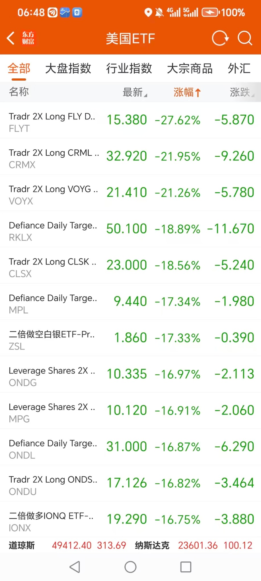 美股ETF跌幅榜Top5